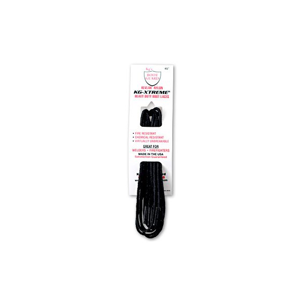 Keep your work boots on tight with KG-Xtreme heavy duty boot laces. These 100% Kevlar¨ and heavy duty nylon laces are braided together, wax coated, and then flame resistant fiber tipped to form the toughest lace around! You won’t have to be afraid to get these laces dirty. They are chemical resistant, fire resistant, and virtually unbreakable. These tough boot laces make the perfect gift for any welder, machinist, firefighter, construction worker, or anyone else in your life that wants laces as tough as the boots they trust each day!